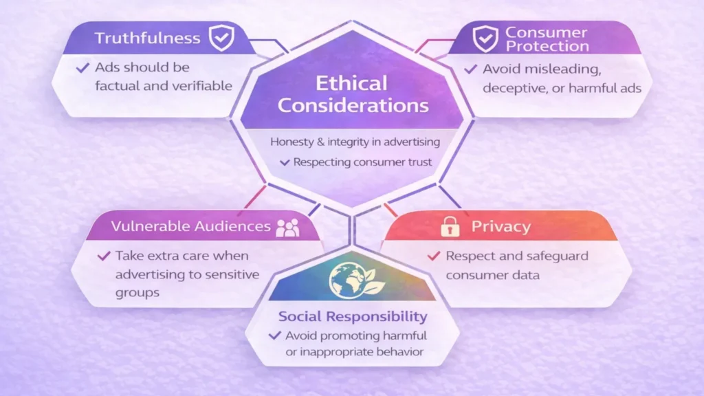 Ethical considerations ensure advertising informs and persuades without exploiting consumer trust.